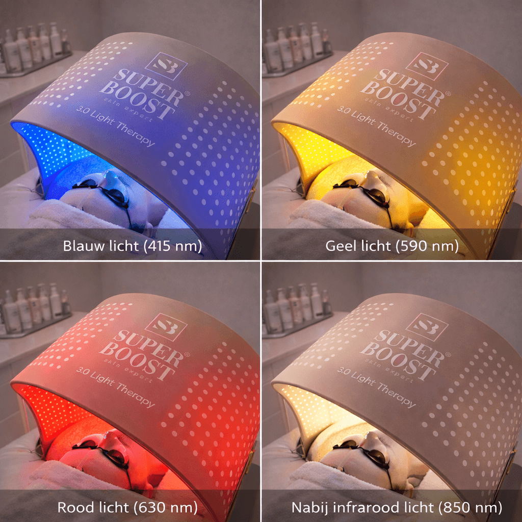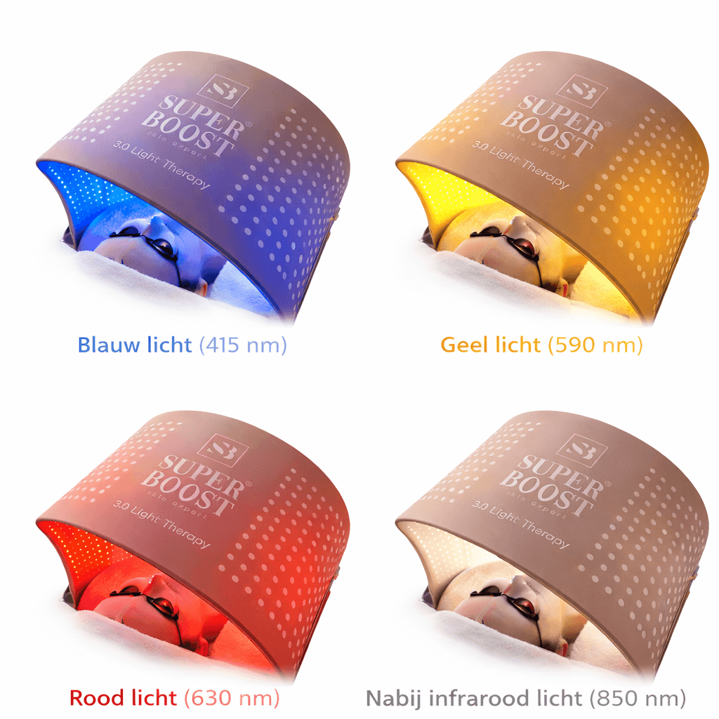 De SuperBoost 3.0 is een geavanceerd LED lichttherapie-apparaat voor professionele huidverbetering. Het apparaat combineert vier klinisch toegepaste lichtfrequenties om de huid diepgaand te stimuleren en te herstellen:
