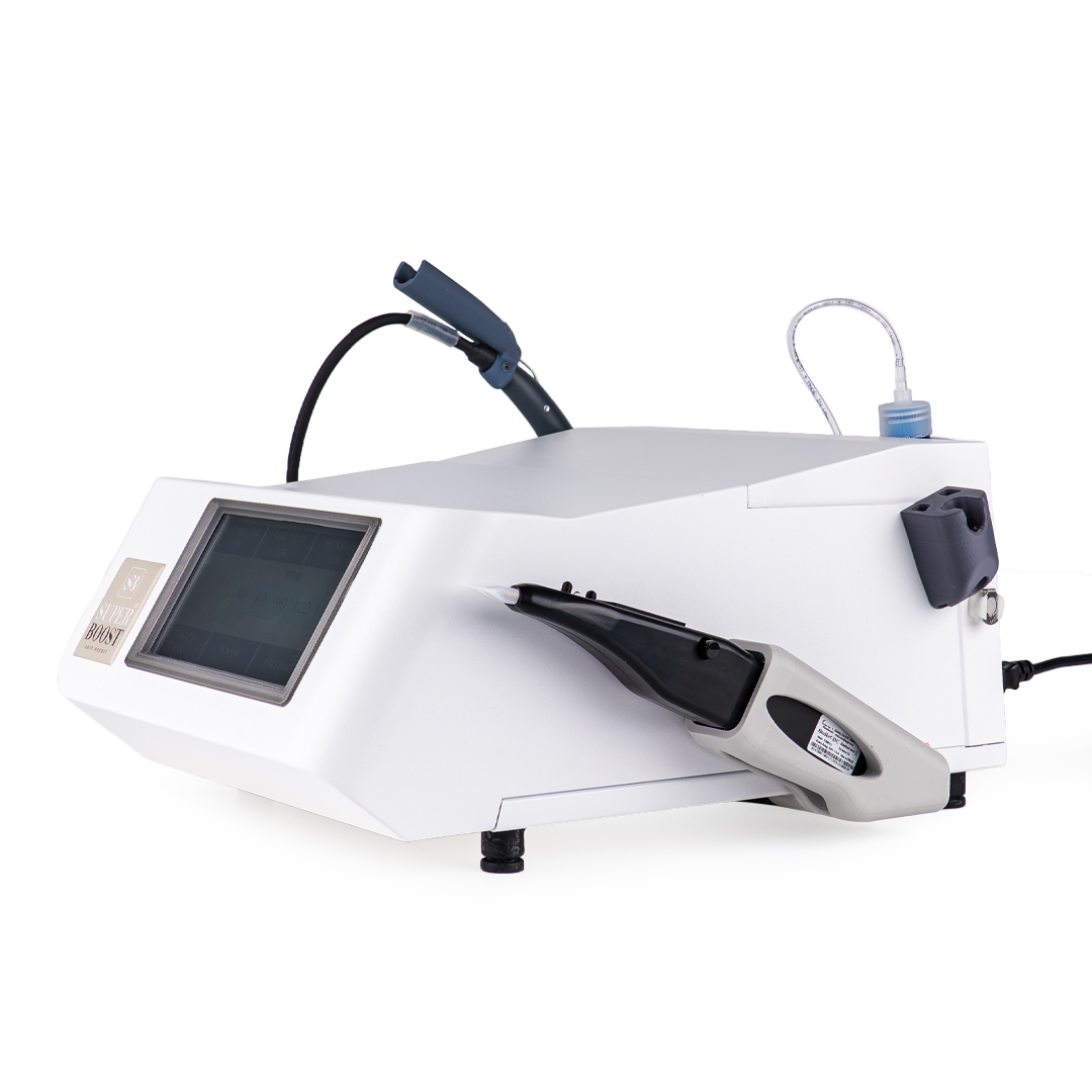 SuperBoost® staat voor 'non-invasief' en 'non-agressief' behandelen. Dat betekent dat er geen mesje of naald nodig is en er géén schade wordt veroorzaakt aan de huid van de cliënt.