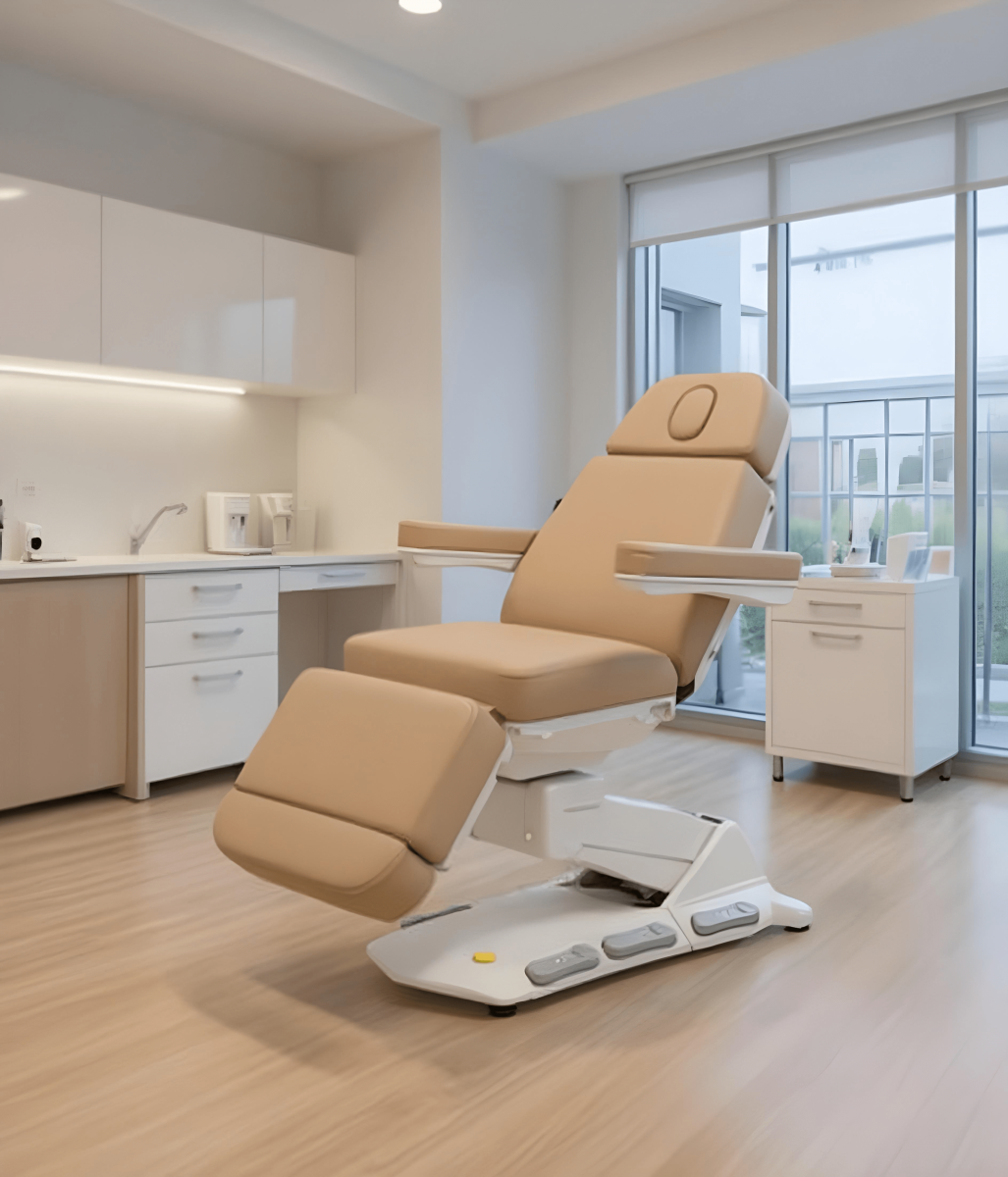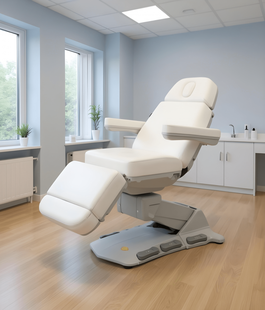 Innovatie en comfort in elk detail. Een behandelstoel die zich met precisie aanpast, ruimte optimaliseert en elke behandeling transformeert in een naadloze en intuïtieve ervaring.