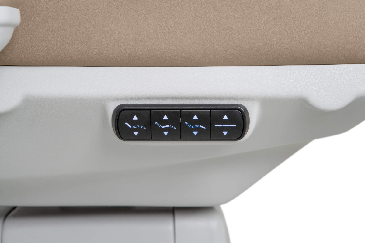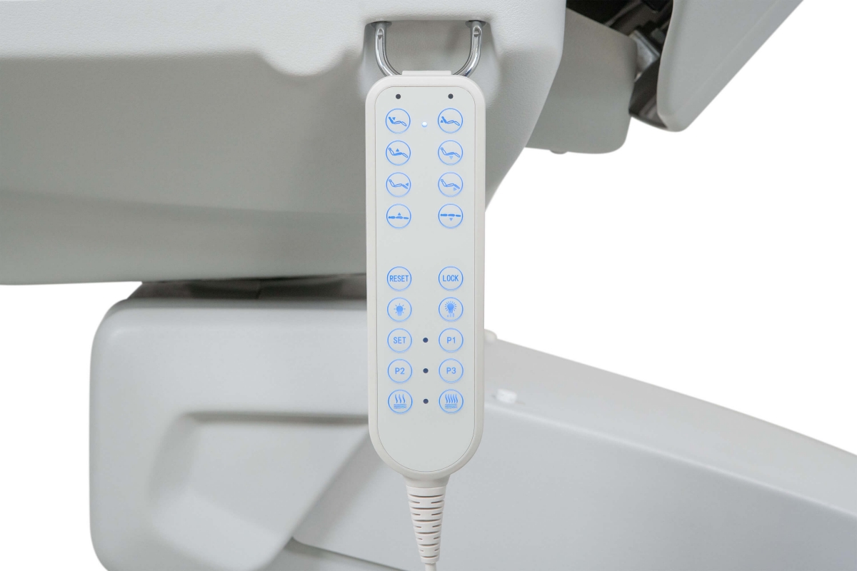 Inclusief 3 programmeerbare geheugenniveaus en een RESET-functie om terug te keren naar de beginpositie. Voorzien van kantelbare armleuningen. De ingebouwde bedieningspanelen en voetbediening bieden volledige controle over alle functies vanaf elke positie van de stoel. Hoogwaardige beige PU-bekleding en een papierrolhouder zijn inbegrepen.