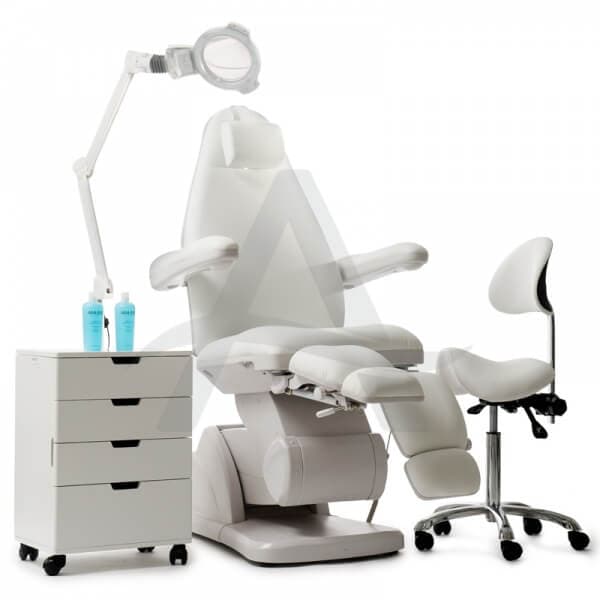 Deze behandelstoel is speciaal ontwikkeld voor de professionele schoonheidsspecialist en pedicure praktijk. De basisprijs is voor de uitvoering in wit. Tegen een meerprijs kun je ook voor een stoel in kleur kiezen.