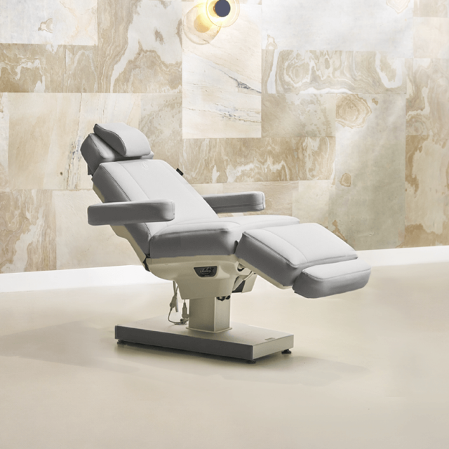 De aluminium voet maakt het mogelijk om verticaal omhoog en omlaag te gaan, hierdoor neemt de behandelstoel minder ruimte in dan vergelijkbare behandelstoelen met een hefboomsysteem. De behandelstoel is uitermate geschikt voor schoonheid- pedicure en lichaamsbehandelingen.