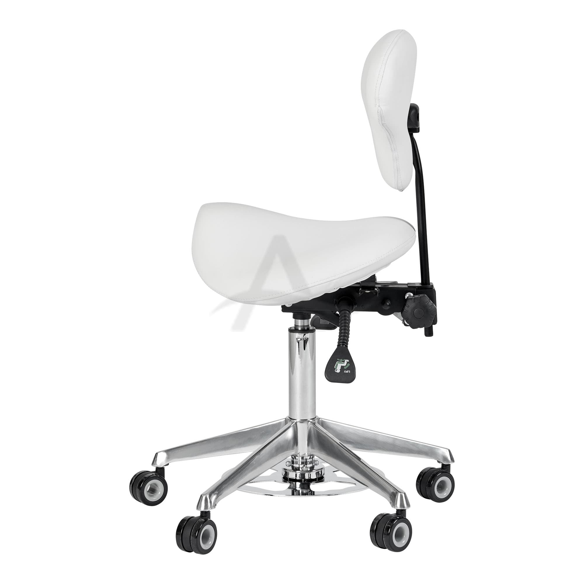 De tabouret ponyseat met rugleuning BATRI is een zeer degelijke tabouret met verstelbare rugleuning, voetbediening en gelagerde, streepvrije, soft zwenkwielen. Bestel deze tabouret online of kom proef zitten in onze showroom!