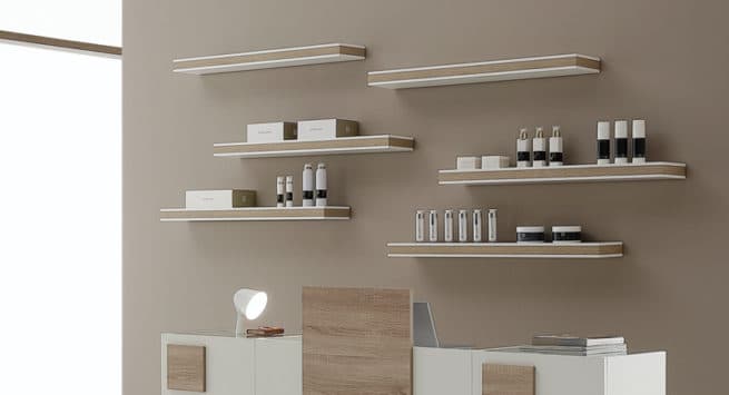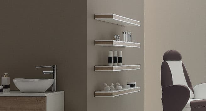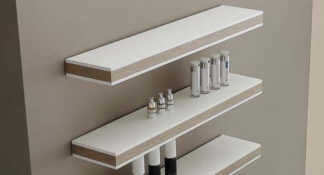 Legplank VISMARA Staros Shelve. Lineaire wandplank, eenvoudig en essentieel, met witte matte structuur en binnenlaag verkrijgbaar in 3 verschillende afwerkingen, optie: