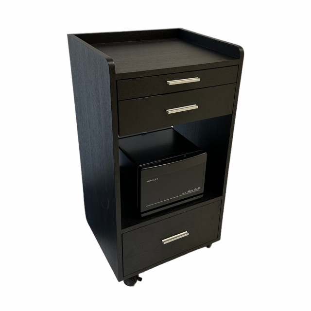 De Trolly Vivaldi Line PRO wordt veel gebruikt in salons en medi spa's. De Trolly Vivaldi Line PRO is een multifunctionele en moderne spa-trolley. Deze trolley heeft een voorziening om goederen op te bergen op de bovenste plank, een uittrekbaar dienblad en twee opbergladen. Er is een open tussenruimte om uw handdoeken of handdoeksterilisatiekast op te bergen. Als optie kunt u een loupelamp houder bevestigen aan de trolly. Handdoekverwarmer is een betalende optie.