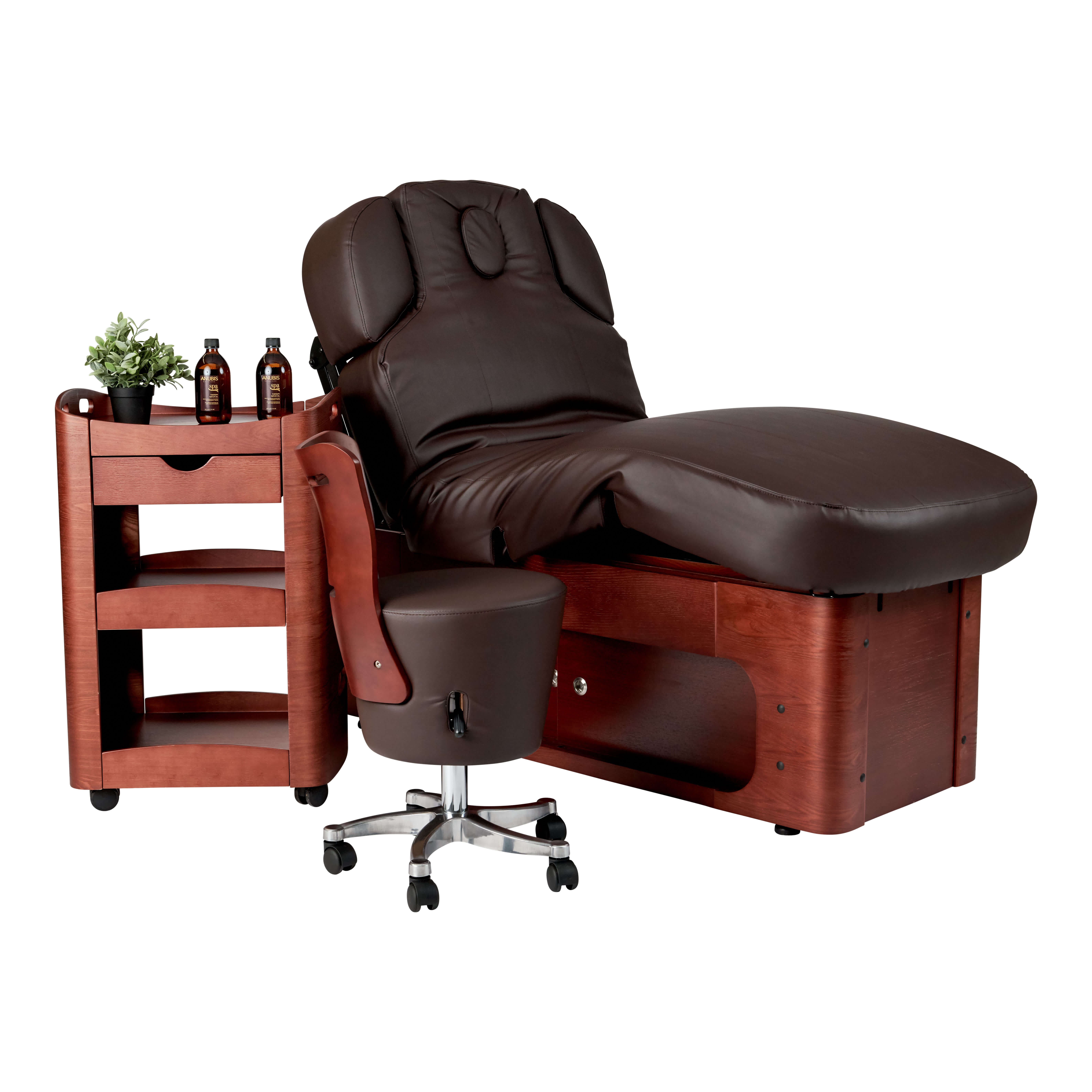 Behandeltafel wellness keid. Zeer luxe spa bed voor in uw instituut. Prachtig afgewerkt met hout en verstelbare armleuningen, volledig elektronisch met 4 motoren.