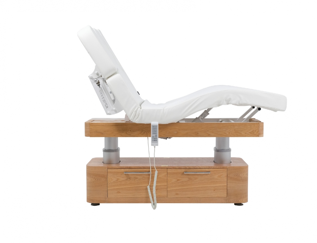 Behandel en wellness tafel OKEN. Beschikbaar in wit en houtkleur