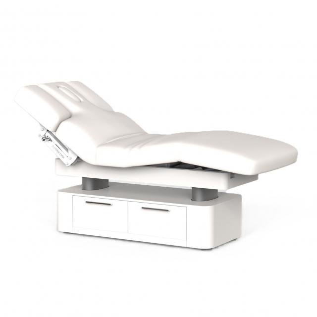 Behandel en wellness tafel OKEN. Beschikbaar in wit en houtkleur