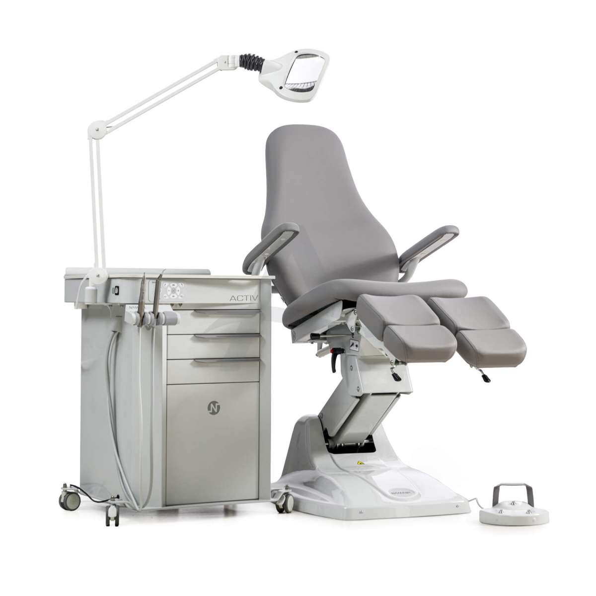 NAMROL® - Vijf (5) jaar GARANTIE VOOR LANGDURIG Werkplezier. Functionaliteit & kwaliteit tegen een optimale prijs. Met deze uiterst comfortabele en stevige Podostoel heeft u alles wat u nodig heeft aan een optimale prijs zonder in te boeten aan kwaliteit. De behandelstoel is van de nodige functionaliteit voorzien en garandeert een optimaal bedieningsgemak door de uitrusting met 1 motor voor hoogteverstelling en de automatische bekkenkanteling. Hierdoor wordt uw cliënt / patiënt automatisch in een comfortabele zitpositie gezet. Bij het plaatsen van de stoel op de juiste werkhoogte ontzien we tevens u en uw nek en rug. De Penta is tevens uitgerust met een draaikrans zodat de pedicure behandelstoel het werk voor u kan doen in plaats van uw rug te belasten ! Met voorgevormde voetsteunen die apart van elkaar in hoogte en lengte versteld kunnen worden en tot 45° weg- geklapt kunnen worden. Dankzij de hoge kwaliteit van de Skai®-bekleding is de stoel eenvoudig te reinigen. Bezoek onze showroom voor meer informatie.