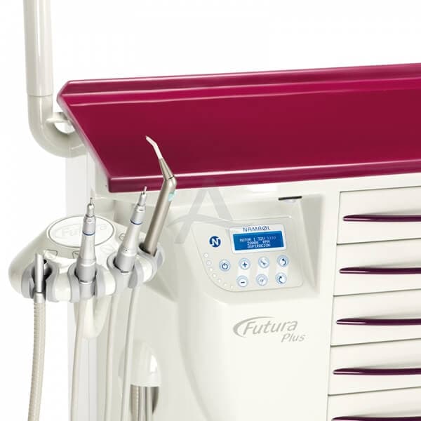 De Namrol futura podologie unit is uiteraard computergestuurd, dus digitaal bedienbaar. De instrumenten zijn via een ergonomische beugel bevestigd aan een degelijke extern geplaatste houder. De combinatie 'voetbediening en digitaal toetsenbord', maken het werken voor de podoloog eenvoudig en toch uiterst professioneel. Waarom zijn NAMROL units de beste ter wereld? Simpel, de kast (unit) is uit één stuk vervaardigd. Waar anderen de kast opbouwen uit losse panelen en aan elkaar bevestigen. De compressor kan op deze manier ook na 10 jaar nog altijd geruisloos functioneren. Er zal nimmer iets (los) trillen! In combinatie met NSK handstukken, motoren en boorslangen ontstaat er een eerste klas kwaliteit. De Namrol Futura unit is naar Uw wensen op te bouwen. Tijdelijk promotie op enkele units met de volgende samenstelling:
