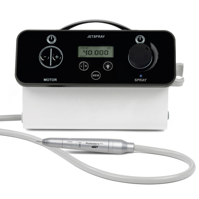 De Nieuwe jetspray LCD pedicure motor is uitgerust met een interne spray. Leverbaar met verschillende motoren, telkens in functie van de intensiteit van werken en de behoefte van de cliënt / patiënt. De handstukken van de Jetspray hebben een laag gewicht.