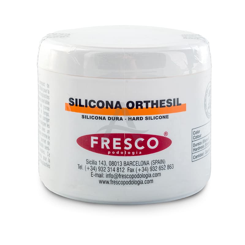Fresco silicone 1400 Hard. Sneldrogende polymeer-silicone, met harde-hardheid (Shore A 28-32). De bleek roze pasta is elastisch, homogeen en heeft een hoge weerstand. Voor palliatieve (pijnverminderende) orthesen met een superieur comfort. Kan gemengd worden met Bland Rosé en medium. Altijd de Fresco Katalysator Reaktol toevoegen.