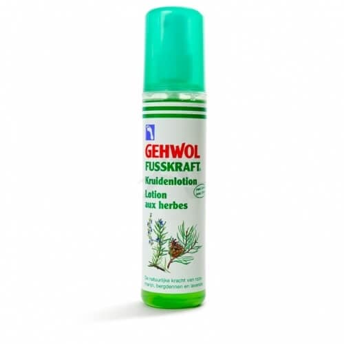 Gehwol fusskraft kruidenlotion spray helpt bij vermoeide voeten. Gehwol kruidenlotion spray vermindert de eeltvorming, deodoriseert, verfrist, verkoelt en maakt de huid weer soepel. Ingrediënten: Essentiële olie van rozemarijn, bergden, lavendel en menthol.