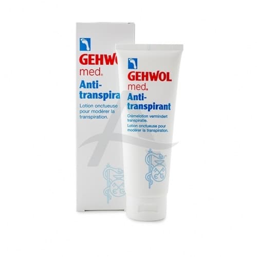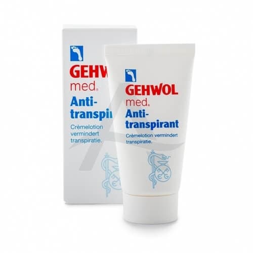 Gehwol med anti-transpirant crème zorgt voor een effectieve vermindering van de transpiratie, door het verkleinen van de zweetporiën (vermindert de transpiratie tot 50%). De anti-bacteriële werking voorkomt voetengeur. Aloë Vera, Avocado-olie en glycerine hydrateren de huid en zorgen ervoor dat zij niet uitdroogt. Ook geschikt voor diabetici.