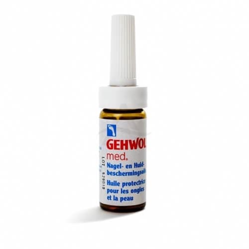 Gehwol med nagel- en huidbeschermingsolie. De schimmelbestrijdende werkstof ‘clotrimazol’ beschermt tegen voetschimmel. Tarwiekemolie zorgt ervoor dat broze, ruwe nagels weer elastisch worden en een natuurlijk zijdeglans krijgen. Heeft een gelijke werking als de Gehwol Med Nagel- / Huidcrème, maar is iets vetter. Ook geschikt voor diabetici.