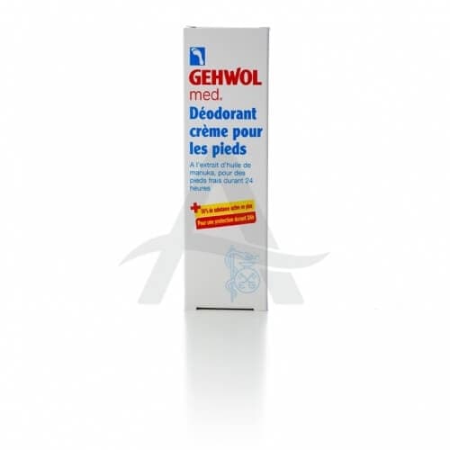 Gehwol med voetdeo crème helpt bij zwetende voeten. Gehwol med voetdeo crème verfrist en deodoriseert langdurig, desinfecteert en beschermt tegen voet- en nagelschimmels. Verder heeft Gehwol med voetdeo crème ook een vrkwikkende werking, en stimuleert het de doorbloeding.